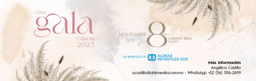 Nos complace invitarle a ser parte de la próxima Gala CAMEXA, un evento que reunirá a nuestros socios e integrantes de la comunidad mexicano-alemana en una amena velada con propósito. Este año, los fondos recaudados se destinarán a apoyar el trabajo de Aldeas Infantiles SOS en México.